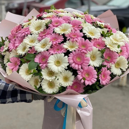 Букет из 101 белой и розовой герберой | Купить в Кембридже
